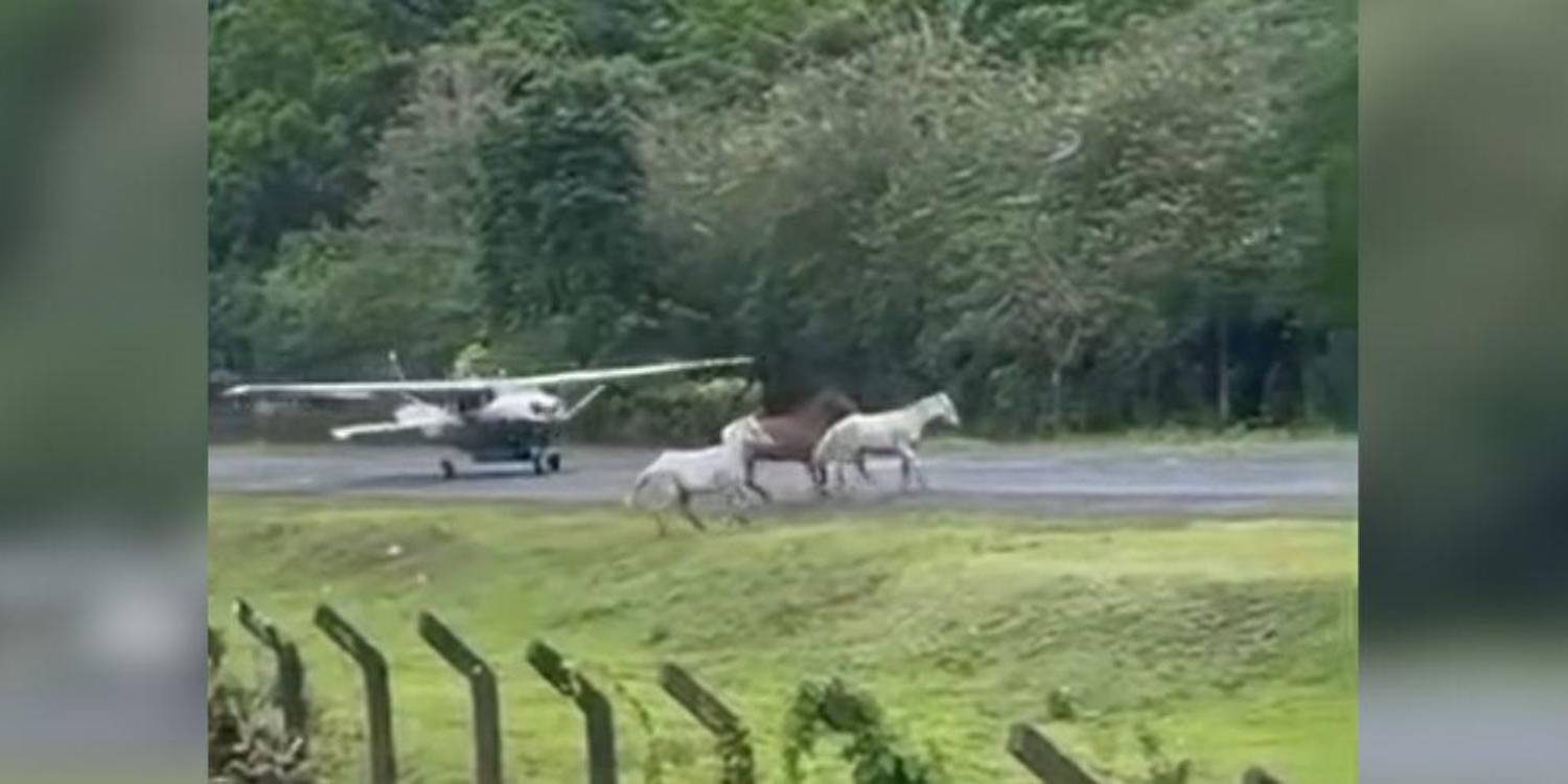 En el video se observa la avioneta a lo lejos, a punto de llegar a la pista. En el mismo instante, de manera repentina, tres caballos saltan un cerco y entran corriendo, convirtiéndose en obstáculos para la aeronave.