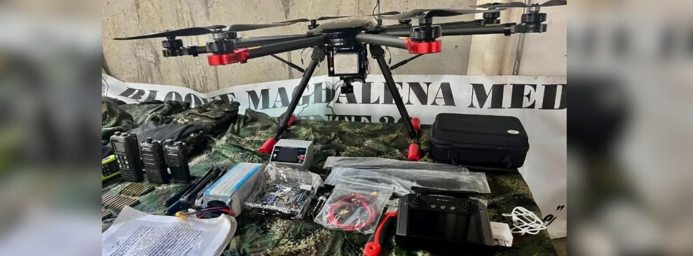 Los drones que estarían usando las disidencias para atacar, vigilar o intimidar en Antioquia son de 8 hélices, tienen capacidad para cargar hasta 25 kilos y se pueden controlar desde una distancia de 40 kilómetros. Uno de esos aparatos ya fue incautado por el Ejército hace una semana en San Andrés de Cuerquia, Norte antioqueño, durante un operativo contra el frente 36.