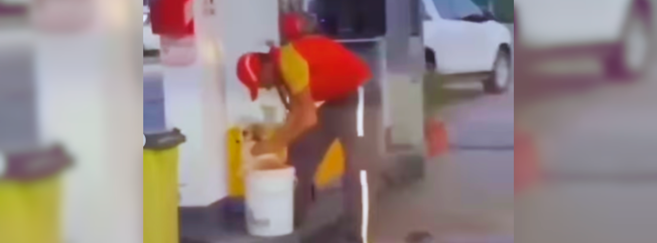 Las altas temperaturas no solo se registran por estos días en varias partes de Colombia, sino también en Argentina donde las mismas hicieron que un empleado de una bomba de gasolina ayudara a refrescar a un perro, al que metió dentro de un balde con agua.