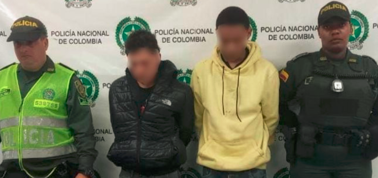 Los capturados, de 23 y 28 años de edad, fueron dejados a disposición de la Fiscalía General de la Nación por el delito de hurto.