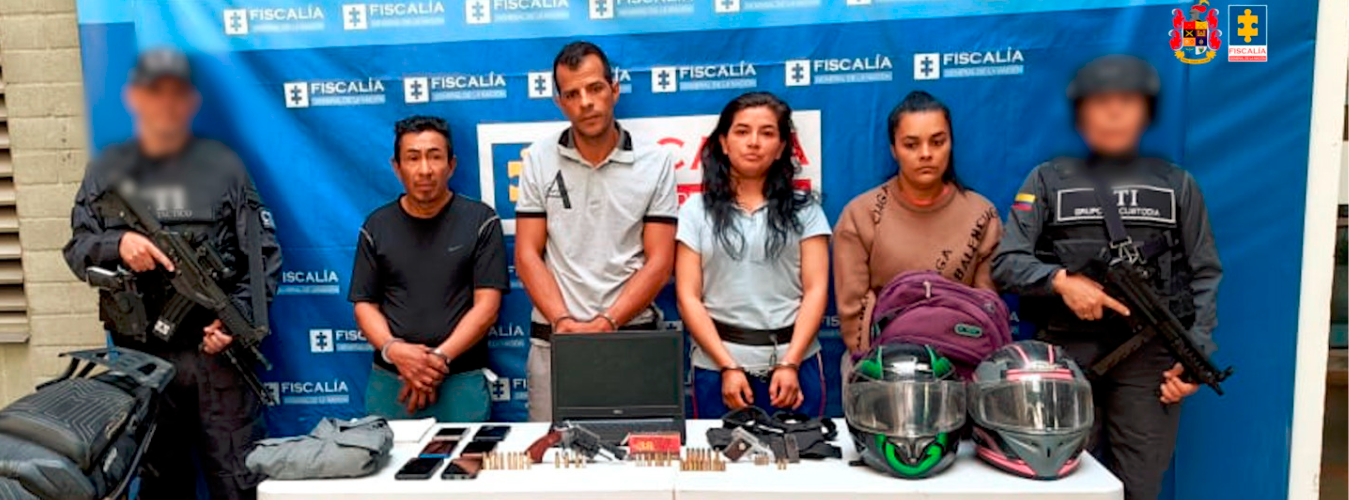 Las cuatro personas fueron capturadas durante allanamientos realizados en Medellín y Soacha, en los que incautaron una moto, varios celulares, un arma de fuego y 59 cartuchos de diferente calibre, entre otros elementos.