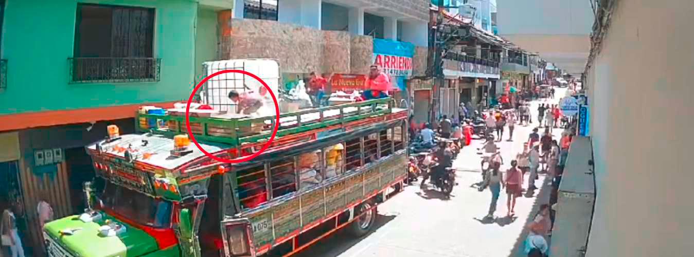 En las imágenes, captadas a eso de la 1:50 p.m., se ve como los campesinos se estaban preparando para abordar el vehículo. En el capacete, varias personas, entre ellas un menor de edad, acomodaban algunas cargas y, al parecer, éste habría regado accidentalmente una caneca de gasolina que reaccionó con una chispa y provocó el incendio.