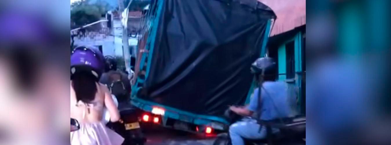 ¿Qué pasó aquí? Eso se preguntaron los ciudadanos que pasaron esta semana por la carrera 52 con la calle 48, en el barrio Santa Ana, en Bello, al ver un camión hundido en el pavimento.