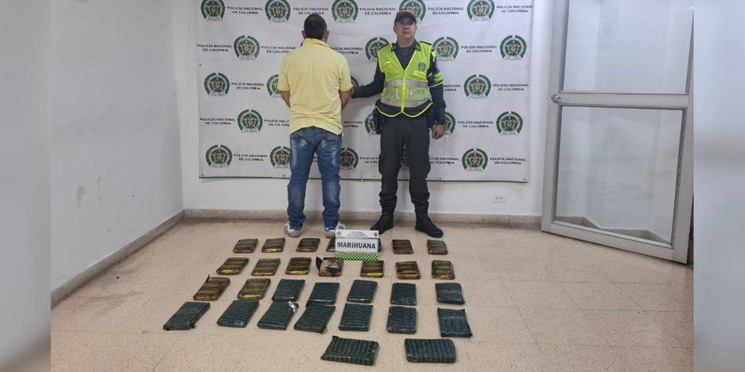 Un hombre fue capturado por la Policía Nacional por el delito de tráfico de estupefacientes, luego de ser sorprendido transportando marihuana en un vehículo de carga en jurisdicción del municipio de Caldas.