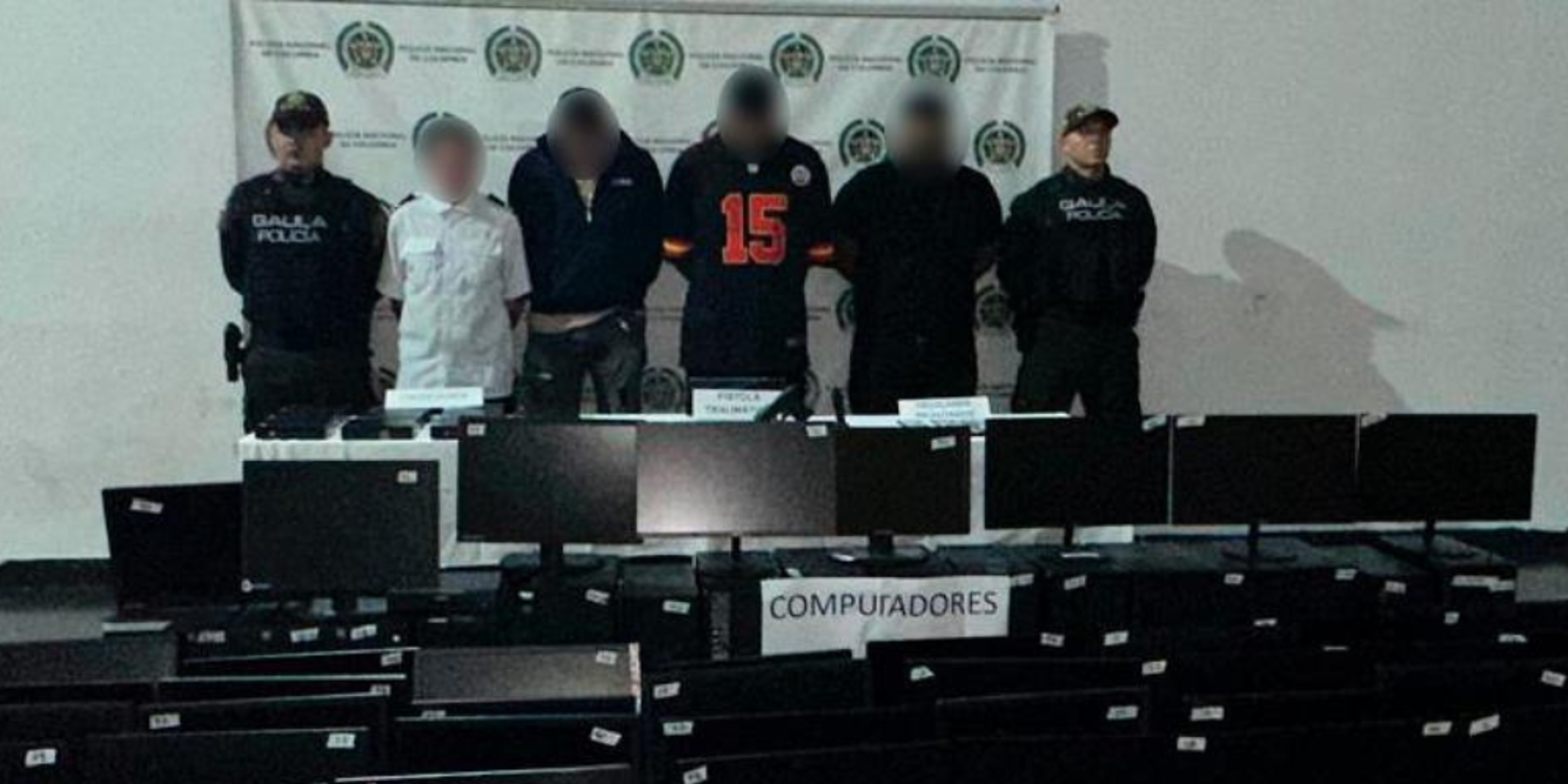 Las autoridades informaron que tras el operativo, pudieron incautar 29 procesadores CPU, 48 monitores, un arma traumática, 6 celulares y el sistema de video vigilancia del inmueble.