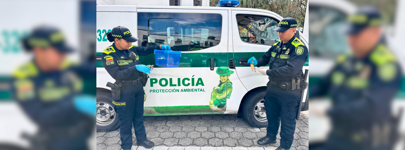 A disposición de la autoridad ambiental quedaron 5 boas constrictor, una babilla y una tortuga morrocoy que fueron incautadas por la Policía cuando acudió a atender un llamado por un caso de robo en Bello.