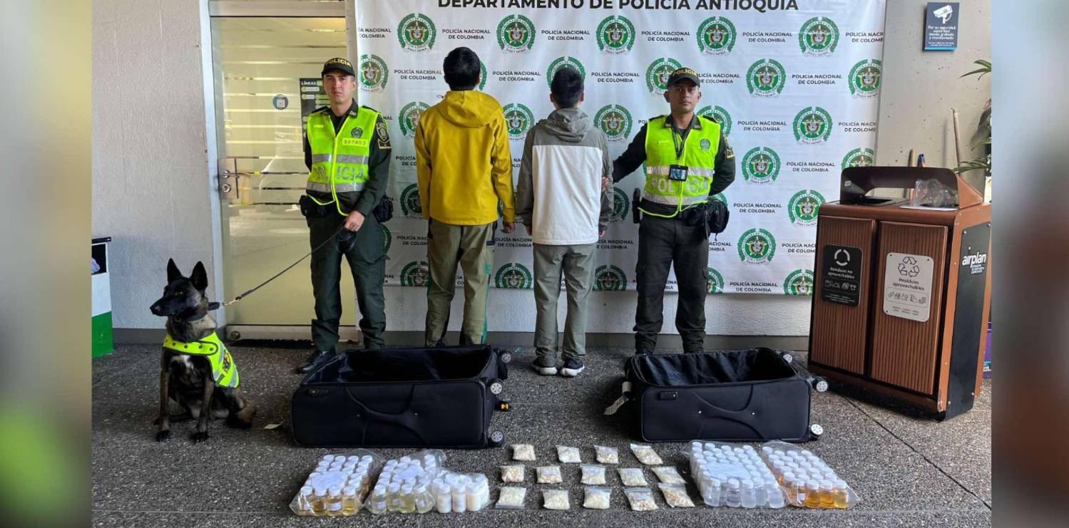 De acuerdo con el coronel Óscar Mauricio Rico Guzmán, comandante del Departamento de Policía Antioquia, los uniformados descubrieron que las maletas tenían doble fondo y allí transportaban 14 kilos de clorhidrato de cocaína, tanto sólido, como líquido. Todo iba camuflado entre objetos personales.