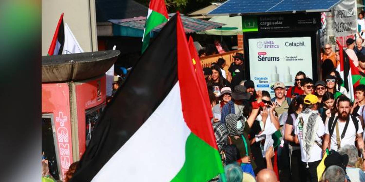 Con arengas a favor de Palestina, y en contra de las acciones militares de Israel en la Franja de Gaza, los manifestantes conmemoraron los dos años del inicio de la escalada armada a esta zona del Oriente Medio, que comenzó tras el ataque terrorista de Hamás a Israel que dejó cerca de 1200 personas muertas y más de 200 secuestradas.