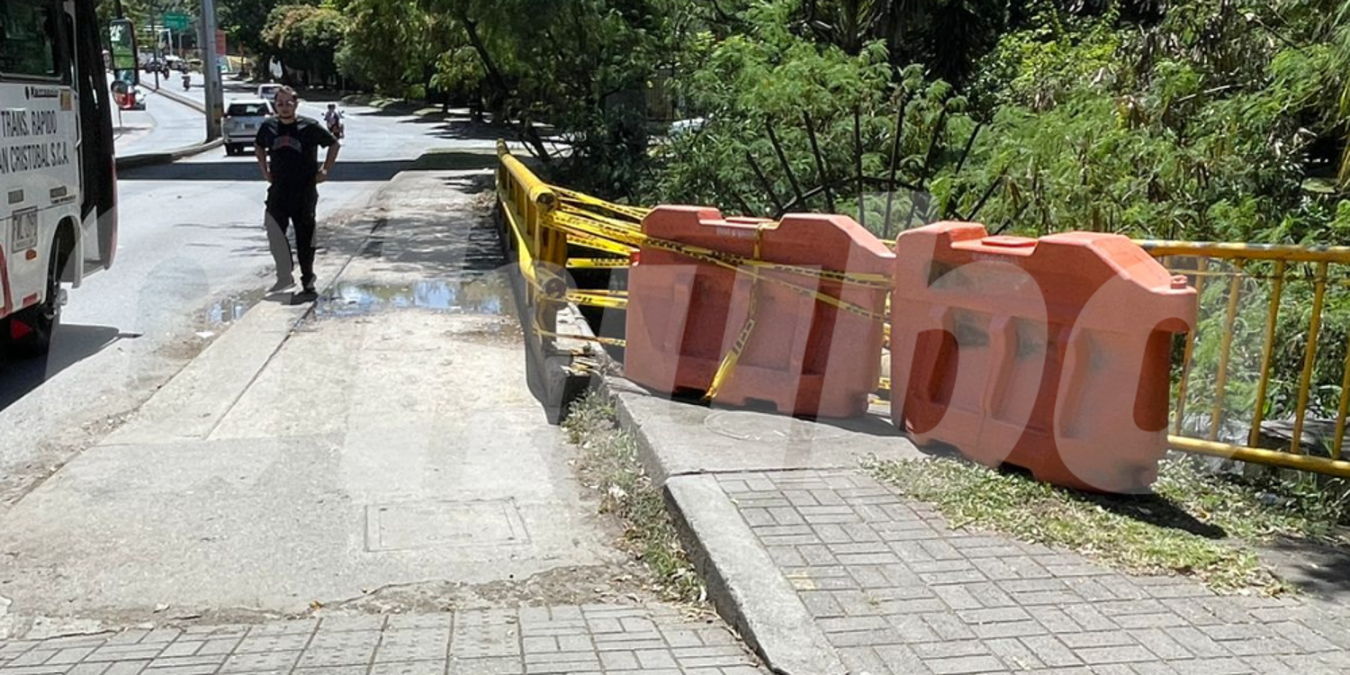 Tras la caída, las autoridades pusieron una cinta y una maleta para evitar nuevos accidentes, mientras se traslada un equipo de la Secretaría de Infraestructura para su reparación