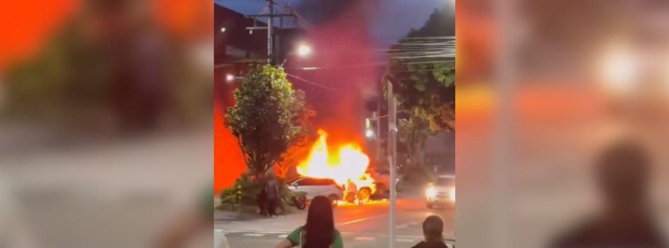 Videos grabados desde edificios cercanos muestran la columna de humo elevándose mientras el Cuerpo de Bomberos de Envigado llegaba para atender la emergencia. Según el informe preliminar, un carro estacionado quedó completamente incinerado, y el fuego alcanzó a otro vehículo que estaba justo al lado, dejándole marcas visibles en las puertas y el capó.