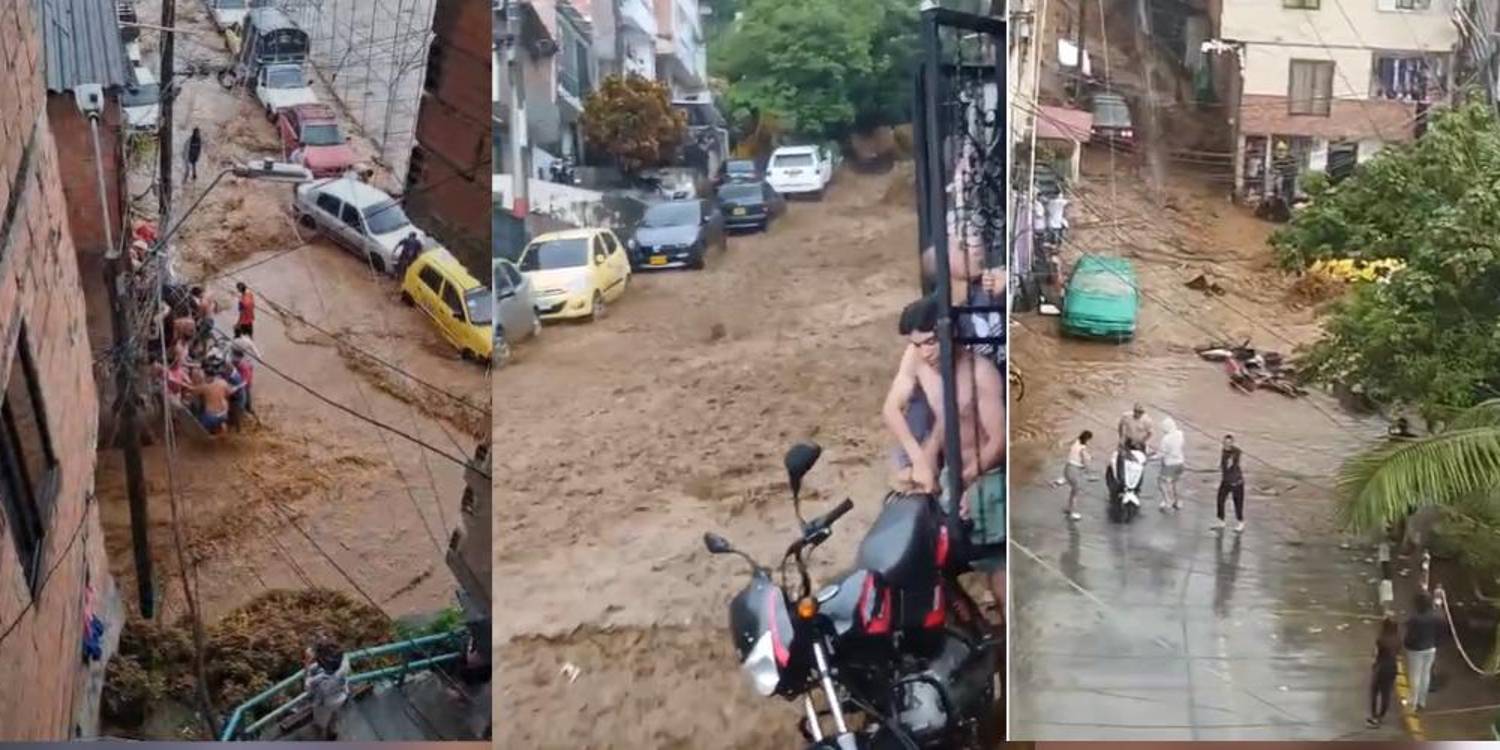 Las principales afectaciones se registraron en los barrios las Granjas y Manrique Oriental, donde la fuerza del agua era tan potente que arrastró vehículos y motos.
