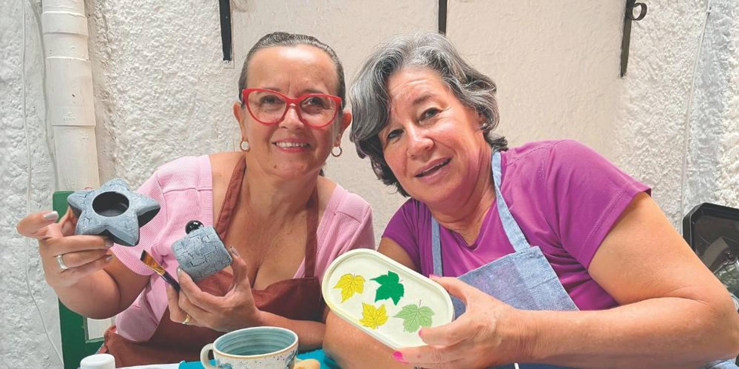 Q’HUBO acompañó parte de la clase de pintura de cerámica, que duró 4 horas, y se percató que es tremendo parche para ellas. “Desde afuera hacia adentro, nunca devolviéndonos”, indica Diana sobre la forma para pintar; “Claudita, usted qué me dice, el verde o el dorado”, le pregunta una de ellas a su compañera.