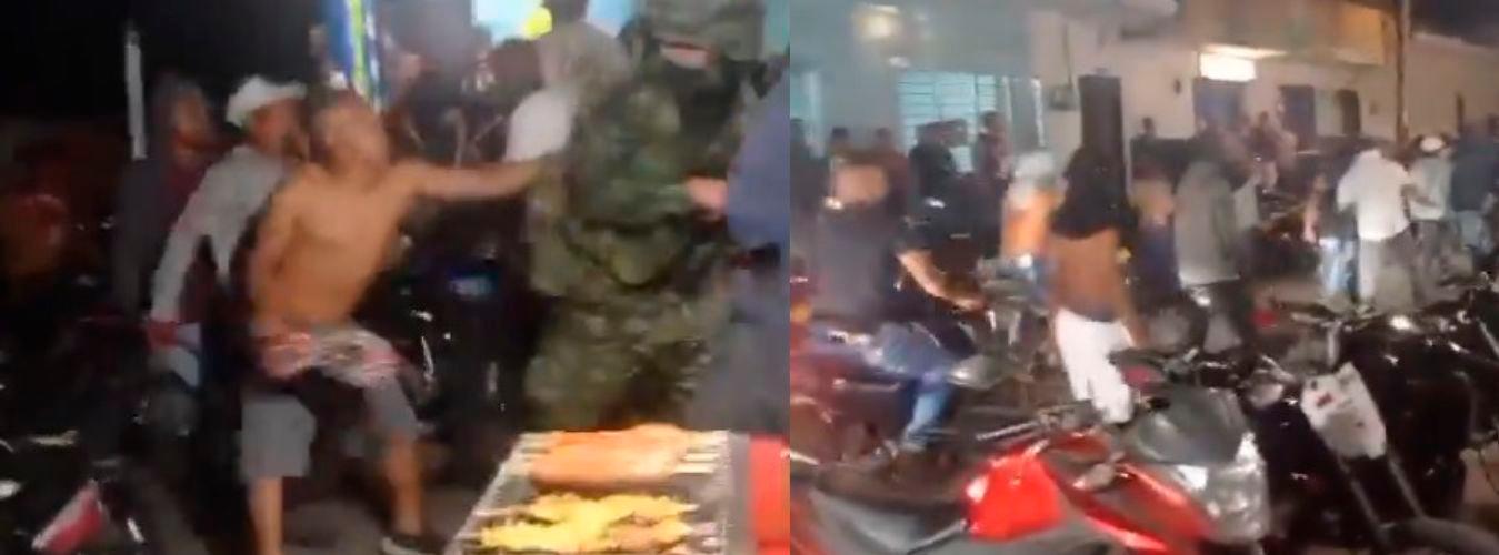 En un video que fue compartido en redes sociales, se observa el momento en el que las tropas fueron expulsadas de la zona, mientras recibían agresiones de varias personas.