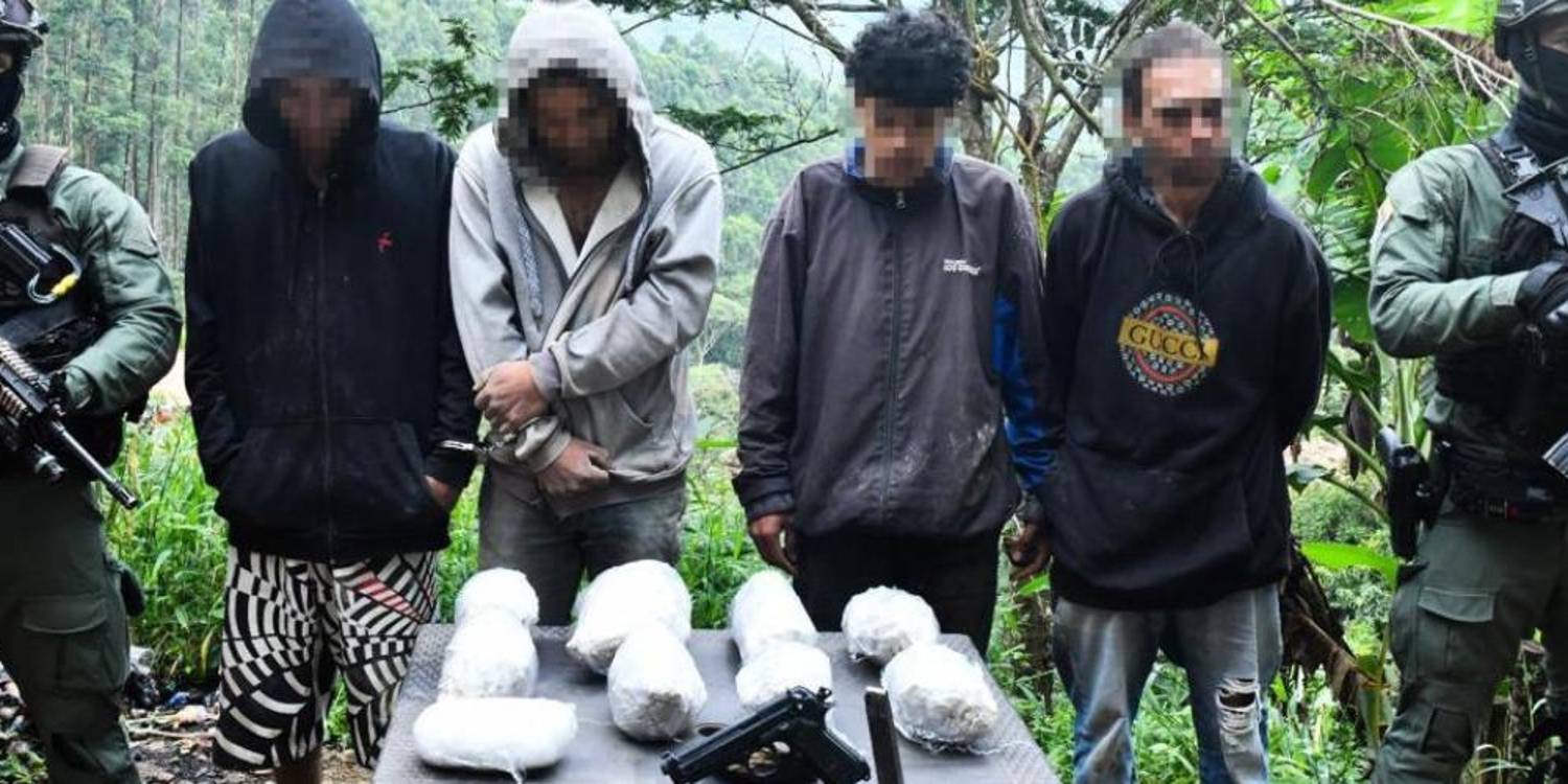 En el lugar fueron capturados cuatro hombres de entre 21 y 45 años de edad que, según las averiguaciones preliminares, registraban antecedentes judiciales por tráfico de estupefacientes. Fueron dejados a disposición de la Fiscalía por este mismo delito y se espera que sean presentados en las últimas horas ante un juez para definir su situación judicial.