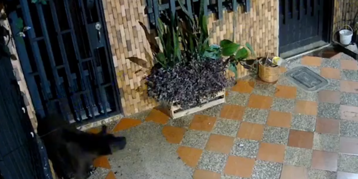 Aquí puede evidenciar el video que circula en redes donde se ve que el animal logra huir, le ladra, pero logra ser impactado por las rocas: