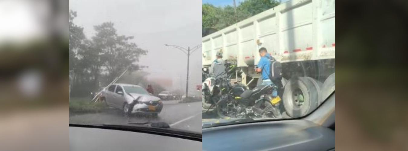 El primero de ellos ocurrió en la avenida Las Palmas, sentido occidente-oriente, a la altura de la parcelación Peña Alta. Según se conoció, el conductor de un vehículo particular perdió el control, derribó las barandas de un separador y terminó impactando contra un poste. Al parecer, una persona resultó lesionada.
