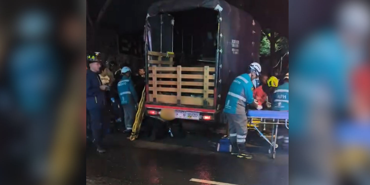 Un fuerte accidente se registró en horas de la noche del martes, 2 de septiembre, en el centro de Medellín, donde se vieron involucrados un camión y dos motociclistas que resultaron gravemente lesionados.