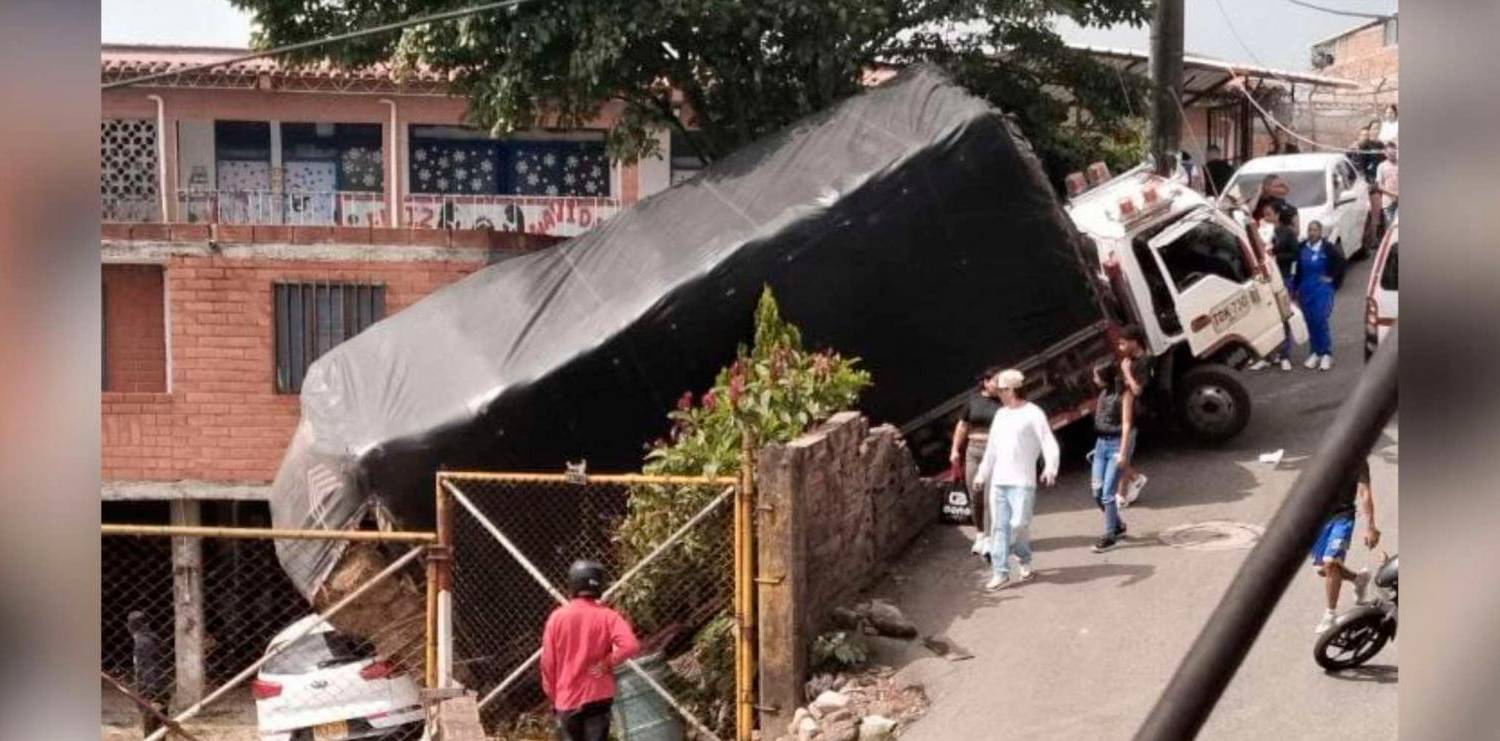 En la calle 97 con la carrera 84 el conductor de un camión perdió el control y en reversa se metió a una propiedad. Luego de traspasar una barrera fue a parar contra otro automotor que se encontraba estacionado.