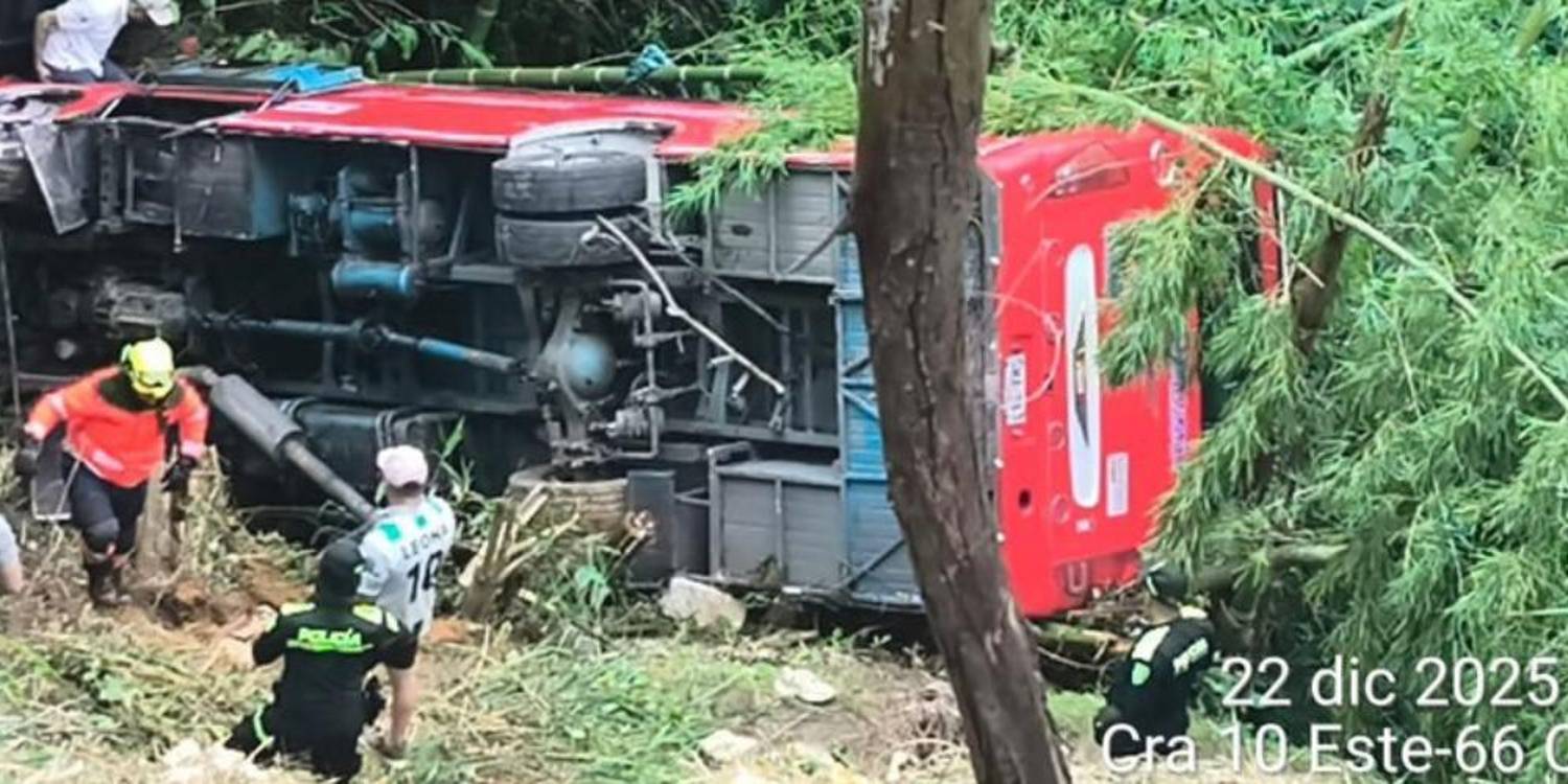 Los hechos ocurrieron a eso de las 11:30 a.m., cuando un furgón que se movilizaba por esa zona impactó a un bus adscrito a la empresa Transportes Medellín Rionegro. Ambos vehículos perdieron el control, y mientras el primero quedó volcado sobre la vía, el segundo terminó impactando a una vivienda y rodando por un abismo.