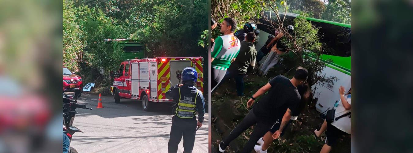 En la mañana de este sábado, 17 de agosto, se registró un accidente en el sector Mahalo, Loma del Escobero en Envigado, luego de que un bus con 41 pasajeros terminara en una zona verde.