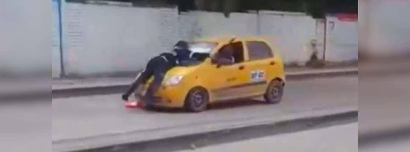 Un nuevo caso de imprudencia se dio en Colombia y este se hizo viral en redes sociales. Un taxista llevó encima del capó del carro a un agente de tránsito que le pondría un comparendo.