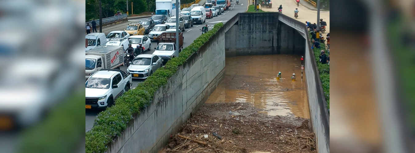 El lodo, la basura y la madera que arrastró la quebrada Altavista se metieron a este soterrado, por donde circulan las líneas 1 y 2 de buses, y fue necesario limitar la operación.