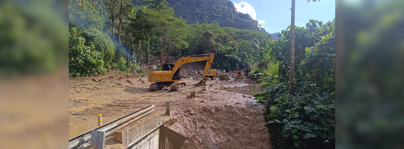 ¡Siguen embalados! El cierre en la vía Medellín-Urabá completa más de 48 horas, debido a que continúan los trabajos arduos de remoción de material para la recuperación de este importante corredor vial.