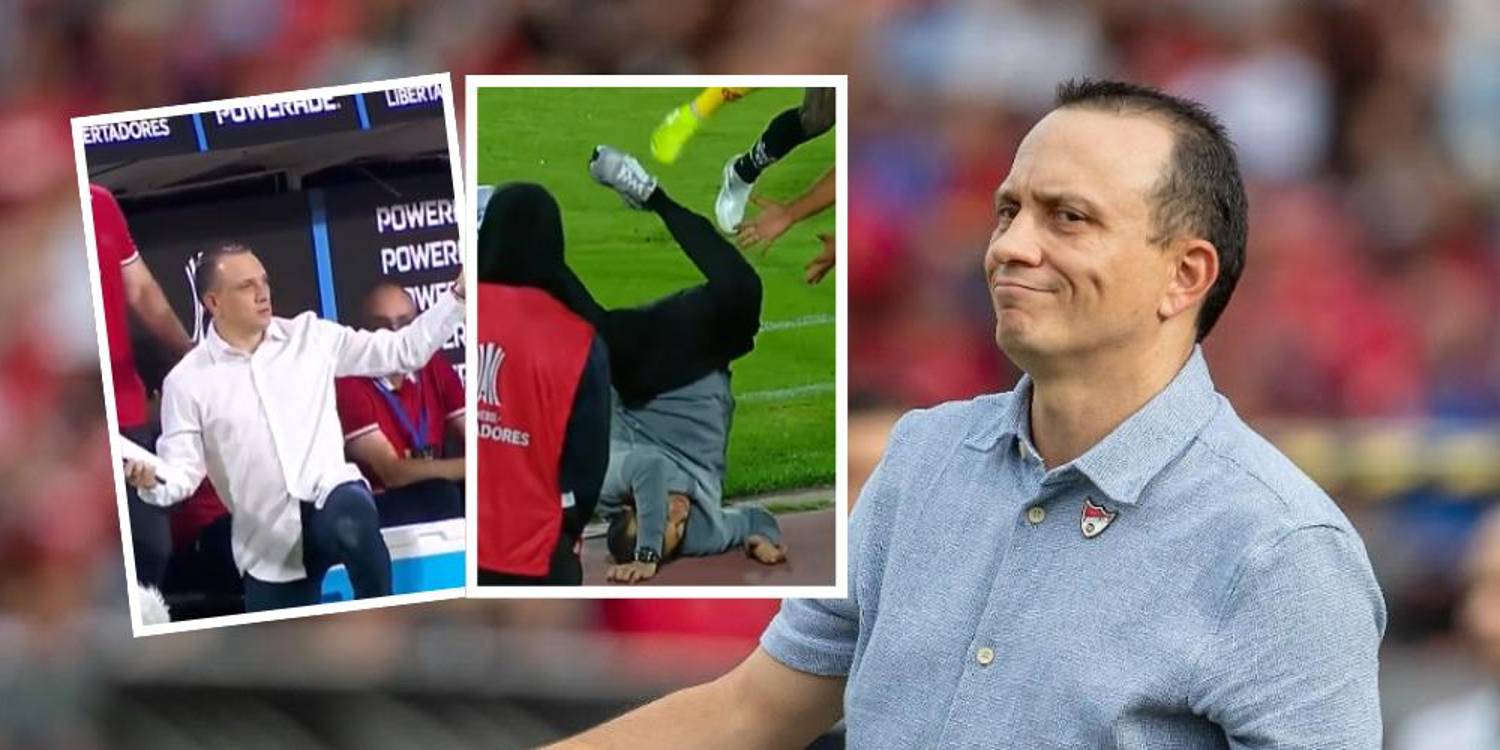 Según se observó en la transmisión, Restrepo no permitió que el saque se hiciera con rapidez: con la pierna izquierda, pisó la pelota y después la alejó del jugador charrúa. Posteriormente, el futbolista tumbó al estratega. Tras revisar las imágenes, el central decidió expulsar al técnico del DIM.