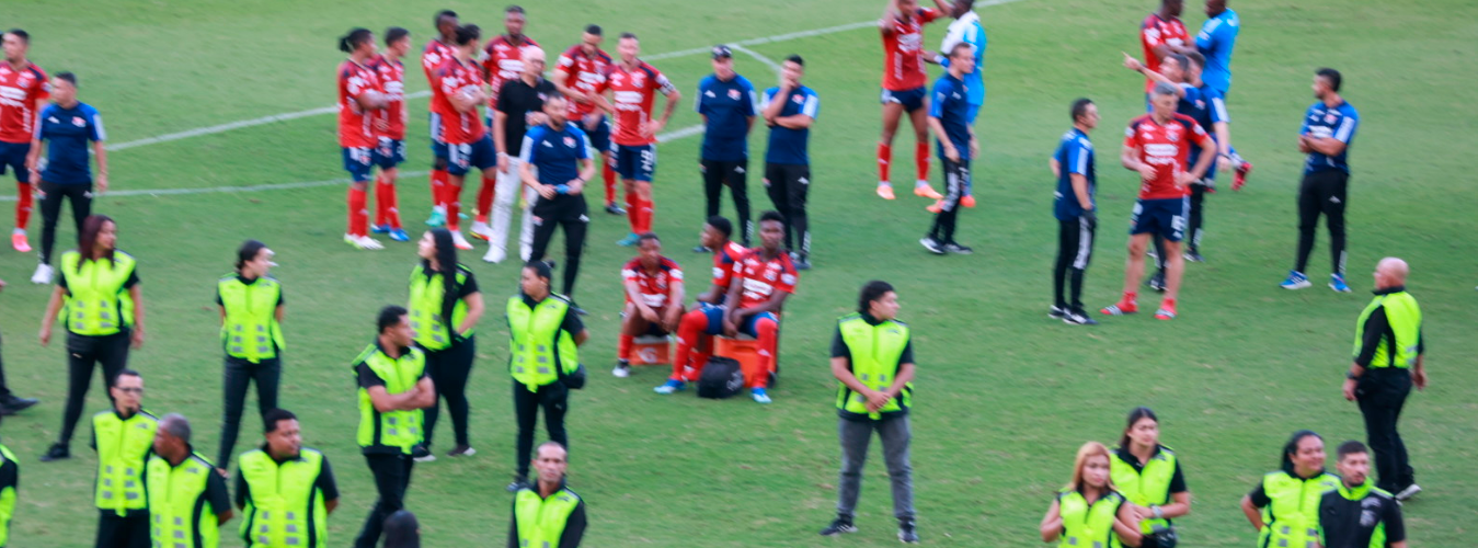 Los desordenes en las tribunas, obligaron al árbitro Jhon Hinestroza a terminar el partido por falta de garantías.