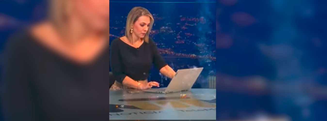 Mientras presentaba en vivo, sobre ella explotó un bombillo. Frente al incidente, la presentadora continuó como si nada y dio paso a las siguientes notas periodísticas.