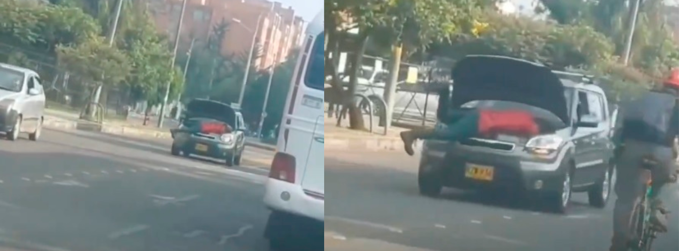 Aunque usted no lo crea, el particular momento quedó registrado en un video y sucedió en Bogotá. Una persona que se desplazaba en otro carro, captó con su celular la peligrosa maniobra en la cual un mecánico reparaba un vehículo.