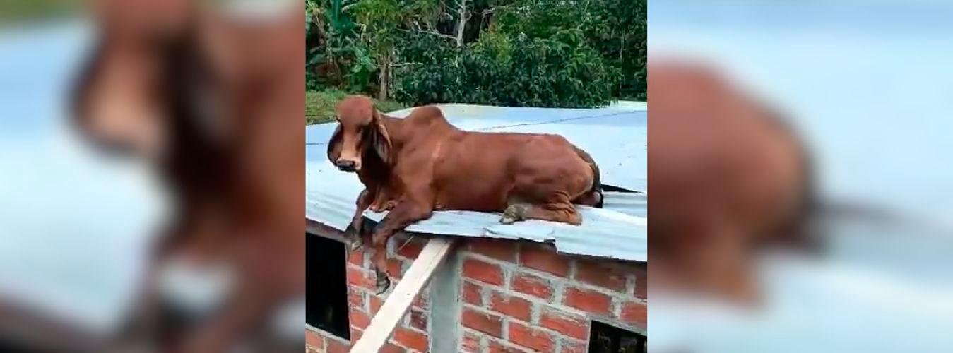 Una curiosa escena quedó registrada en un video que se ha viralizado en redes sociales, donde un ternero terminó en el techo de una casa en el municipio de Anorí, Nordeste antioqueño.