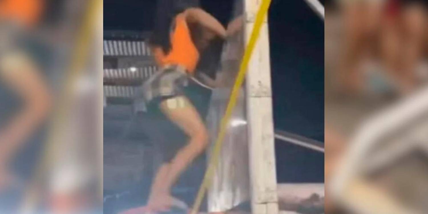 En la grabación se observa cómo la joven se sube a la estructura metálica del aro de baloncesto con la intención de realizar un baile provocador.