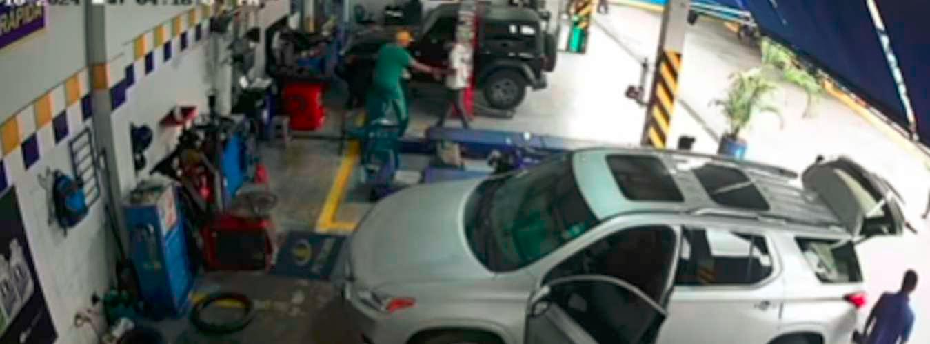 Mientras esperaba que le repararan el carro fue abordado por un sujeto que lo amenazó con un arma y le arrebató una cadena, un reloj, las pulseras y los anillos. En el video se puede ver un forcejeo, e incluso se observa que al atracador se le cae una de las joyas, pero rápidamente la levanta y sale corriendo nuevamente.