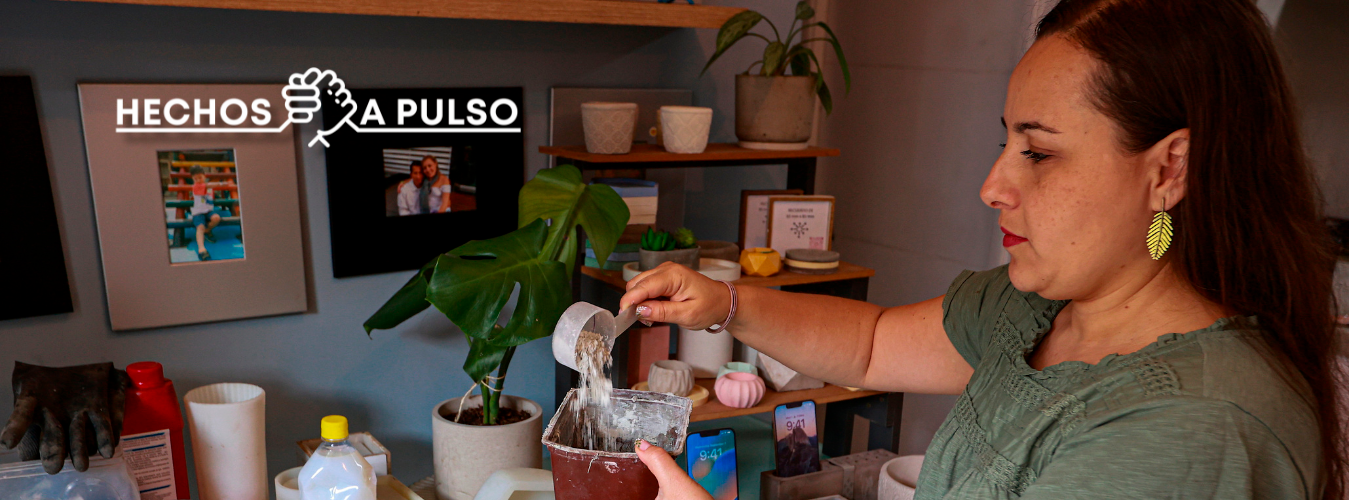 En la infancia vendía manillas y ahora lidera en compañía de su esposo Hugo Gutiérrez y de sus hijos, José (11 años) y Julieta (6), el emprendimiento Akebia, accesorios en concreto.